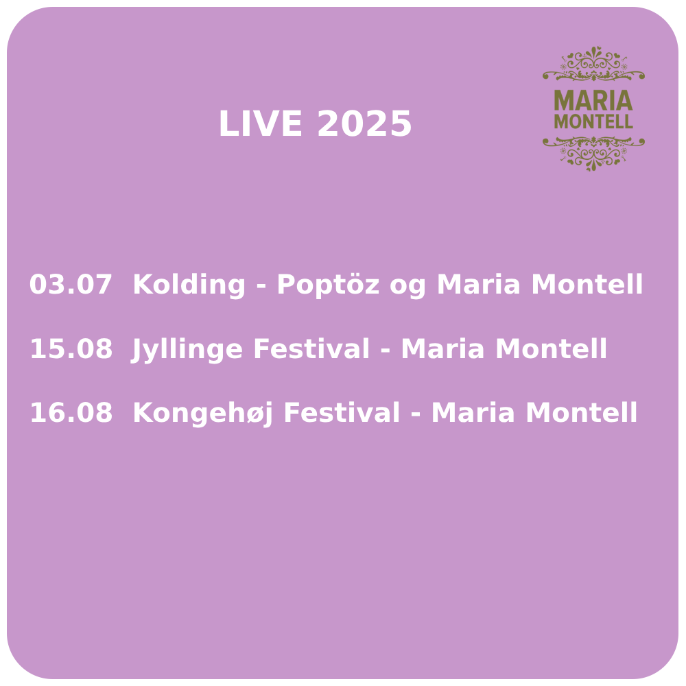 Maria Montell is an established name on the Danish music scene and has released no fewer than 8 albums as a solo artist and songwriter. Songs and pop hits such as Jeg er her for dig, Sådan går det hver gang, Svært at være gudinde, Kys mig op til himlen, Her er gude godt at være, and Imens hun sang (Di da di) were some of Danish national radio (P3) most played songs in the ’90s.